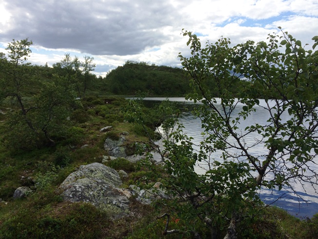 El llac Gråskallatjørni, on vam dinar i també s'hi van banyar: